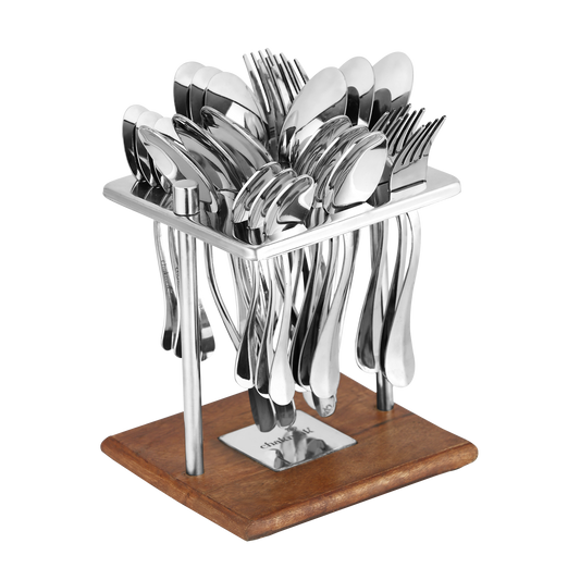 GREENWOOD BUGGET CUTLERY SET SQUARE STAND 25PCS