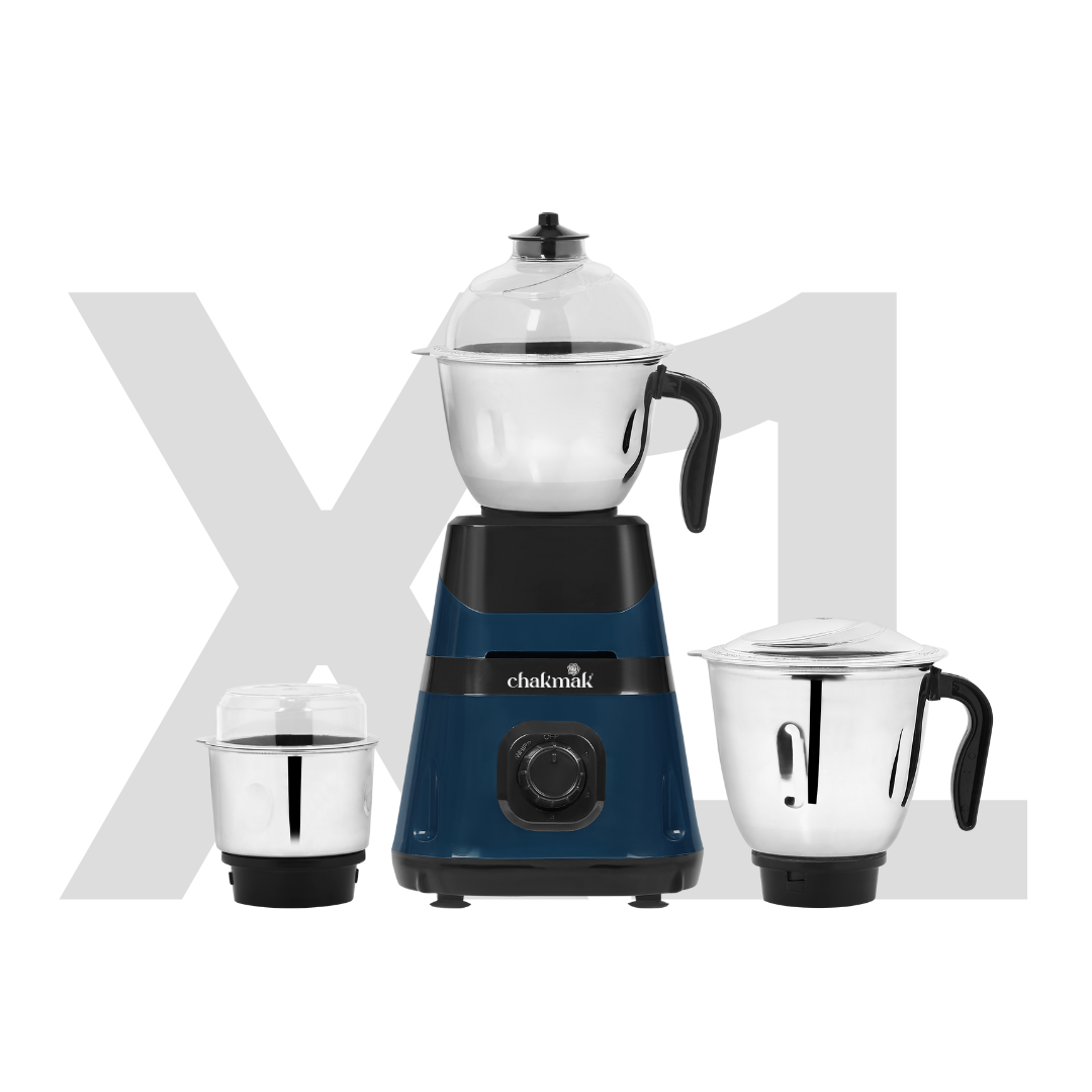 The Chakmak X1 750W Mixer Grinder is a versatile kitchen appliance designed to handle a variety of tasks, from grinding spices to blending smoothies. It comes with three multipurpose jars to cater to different needs: